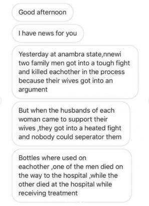 Two husbands dead after bloody fight over their wives during Anambra lockdown.